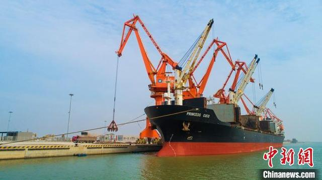 1日上午,靠泊在江蘇鹽城港濱海港區(qū)通用碼頭、滿載著從印度尼西亞進(jìn)口的兩萬噸鎳鐵的利比里亞籍貨輪緊張有序地進(jìn)行卸貨作業(yè)。這是鹽城港濱海港區(qū)一類口岸正式對(duì)外開放后迎來的首艘外貿(mào)貨輪。