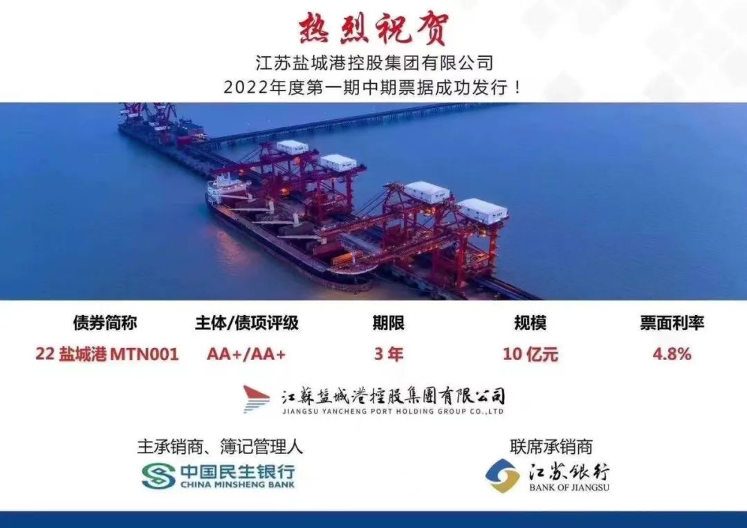 好消息!鹽城港集團2022年度第一期中期票據成功發行