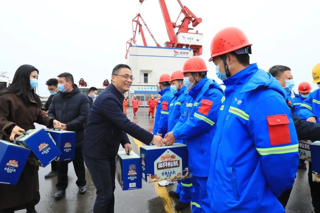 1月22日,大年初一,碼頭一線到處洋溢著節(jié)日喜慶氣氛。受集團黨委、董事會委托,當(dāng)天上午,集團黨委副書記、董事、總經(jīng)理陸帥率隊前往大豐港區(qū)看望慰問堅守在一線工作崗位的工作人員,代表集團黨委、董事會向他們致以新春的祝福和節(jié)日的問候。鹽城海關(guān)二級高級主辦李健,集團副總經(jīng)理袁欣等參加。