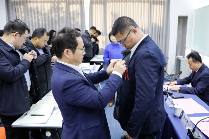 典禮上,吳先華院長為學員代表佩戴校徽,吳先華、梁洪兵共同為鹽城港集團代表授予班旗,這也代表鹽城港的各位學員正式加入上海海事大學的大家庭。