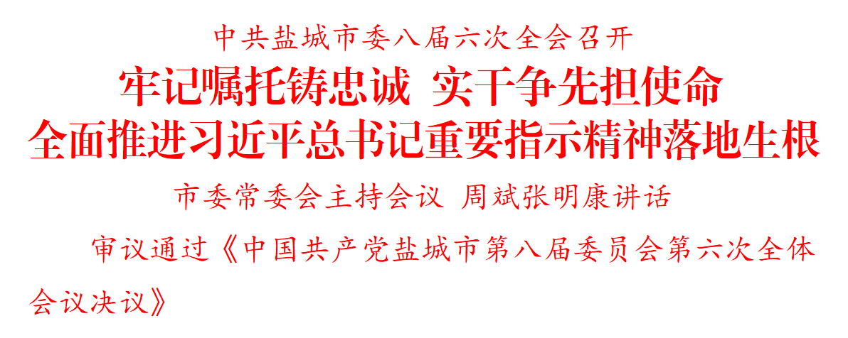 全會(huì)審議通過《中國(guó)共產(chǎn)黨鹽城市第八屆委員會(huì)第六次全體會(huì)議決議》,討論了《中共鹽城市委常委會(huì)2023年度工作情況報(bào)告》《中共鹽城市委常委會(huì)2023年度落實(shí)全面從嚴(yán)治黨主體責(zé)任情況報(bào)告》。