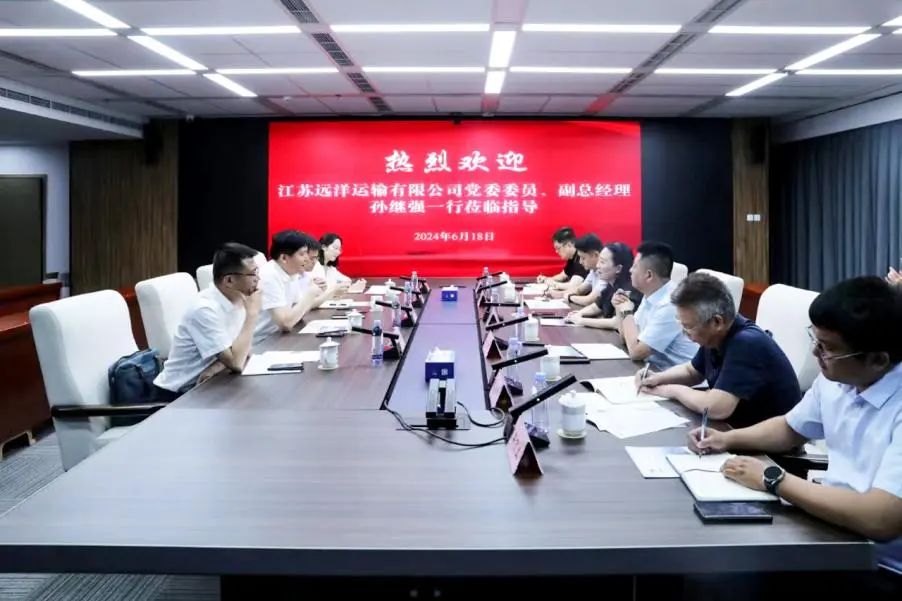 6月18日,江蘇遠(yuǎn)洋運輸有限公司黨委委員、副總經(jīng)理孫繼強率隊拜訪我集團(tuán),就開展業(yè)務(wù)合作進(jìn)行交流。集團(tuán)副總經(jīng)理袁欣接待孫繼強一行,集團(tuán)相關(guān)負(fù)責(zé)同志等參加。