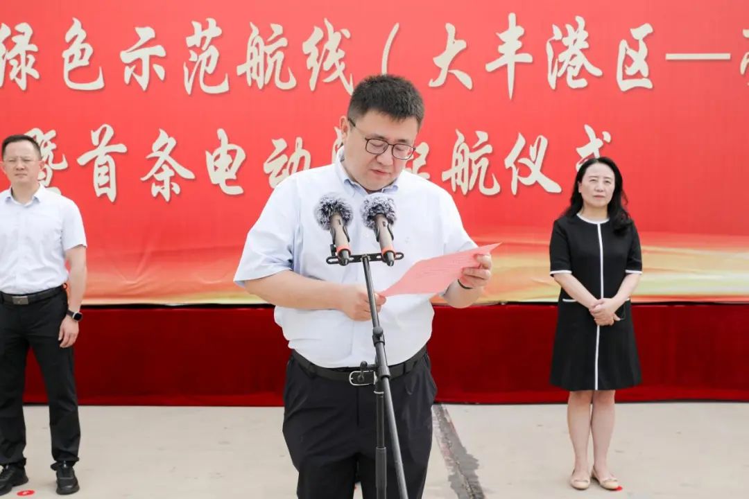 為積極策應(yīng)“水運(yùn)江蘇”建設(shè),大力發(fā)展綠色低碳內(nèi)河航運(yùn),推動(dòng)鹽城港航事業(yè)高質(zhì)量發(fā)展。8月6日,鹽城港集團(tuán)隆重舉行內(nèi)河集裝箱綠色示范航線開(kāi)航暨首條電動(dòng)船起航儀式。集團(tuán)黨委副書(shū)記、董事、總經(jīng)理陸帥,集團(tuán)副總經(jīng)理袁欣,集團(tuán)黨委委員、副總經(jīng)理孫永峰,相關(guān)單位及部門(mén)負(fù)責(zé)同志,船貨代企業(yè)代表等參加。