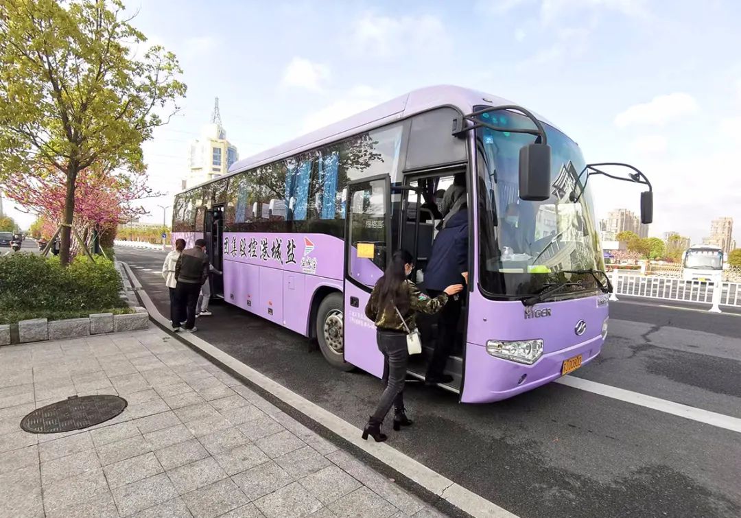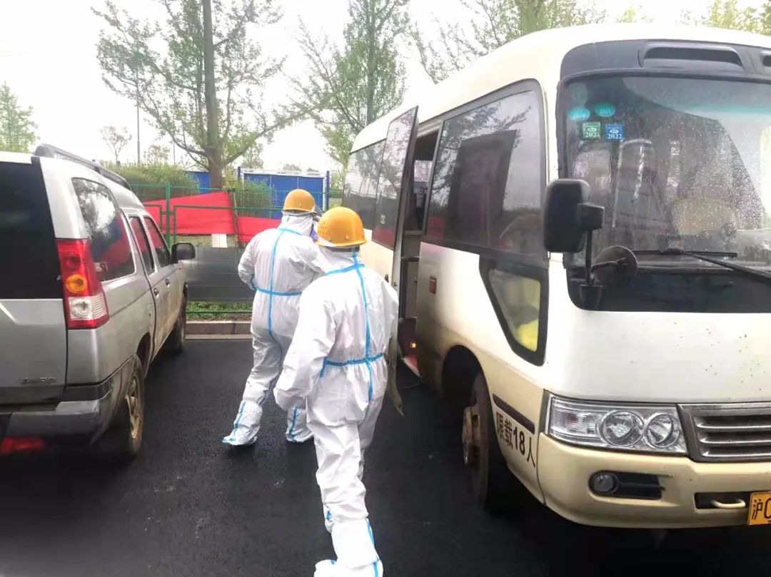 汽服公司的大巴準時發車,保障通勤,測溫、驗碼、登記必不可少。