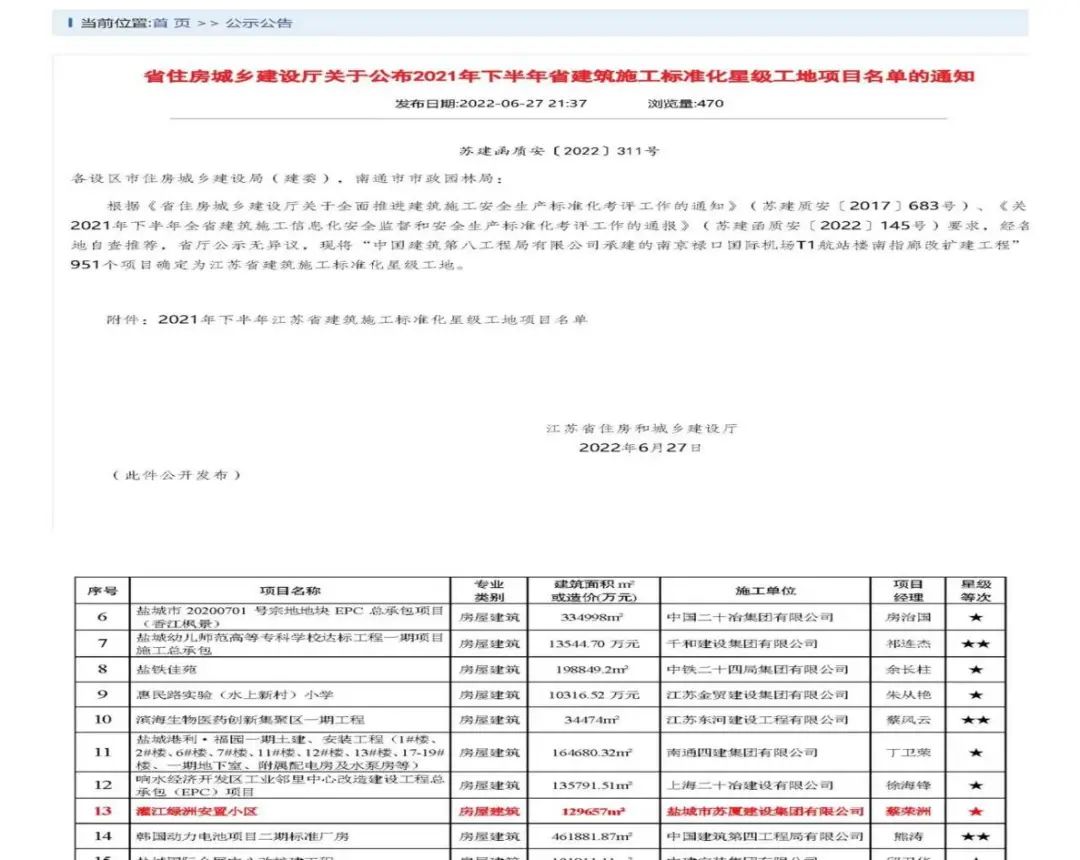 近日,鹽城港集團(tuán)灌江綠洲安置小區(qū)項(xiàng)目在榮獲“鹽城市建筑施工標(biāo)準(zhǔn)化示范工地”稱(chēng)號(hào)后,再次榮獲“2021年下半年江蘇省建筑施工標(biāo)準(zhǔn)化星級(jí)工地”稱(chēng)號(hào)。