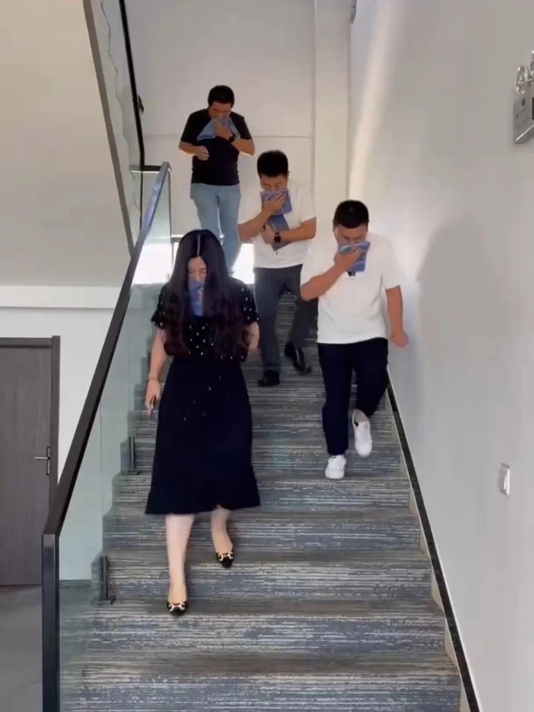 隨著總指揮的一聲令下,一陣陣急促的警報聲拉開了應急演練活動的帷幕,當警報在辦公樓內響起,職工們迅速用濕毛巾捂住口鼻,現場疏散人員立即有序引導職工沿著安全逃生通道撤離至安全地帶。