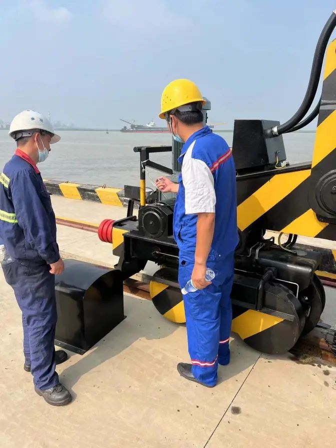 門機設備裝置涵蓋了電氣、機械、油路等眾多類型,回路復雜,工藝繁瑣,如細節處理不到位,后期極有可能存在作業隱患。自重件碼頭項目組裝工作開展以來,專項工作組成員頂著酷暑不懼“烤”驗,克服時間緊、任務重、人手少的實際困難,堅持經常性現場巡檢,保證每個關鍵項目都有現場督查,每個部件交付都安排相應崗位人員參培。對在現場督查過程中發現的部分油管母線連接松動等問題,工作組第一時間要求廠家按標準進行限時整改,并督促施工方在現場嚴格把關,確保后期驗收工作高質量、高標準按時完成。