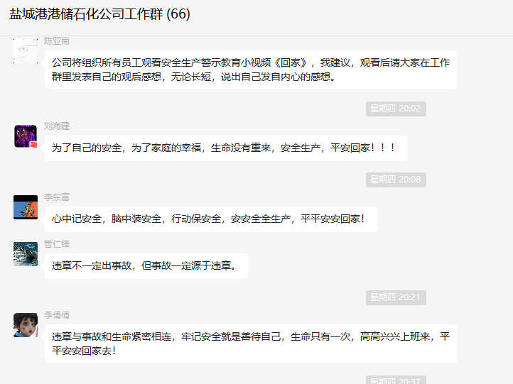 港儲(chǔ)石化利用班前晨會(huì)時(shí)間,組織職工觀看安全生產(chǎn)警示教育視頻,進(jìn)一步增強(qiáng)職工風(fēng)險(xiǎn)防范意識(shí),牢固樹立起“沒有安全,一切都是零”的思想觀念。職工紛紛表達(dá)了對安全生產(chǎn)的決心和對安全生產(chǎn)堅(jiān)定不移的信念,在思想上完成“要我安全”到“我要安全”的轉(zhuǎn)變。