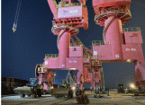 “5#門機入軌正?!薄靶凶邫C構壓輪正?!薄盎剞D、起升、變幅機構運行正?!彪S著現場指揮員對講機里傳來各機構一切正常運行的報告,經過10個晝夜的連續奮戰,鹽城港射陽港區碼頭門機移位作業宣告完美收官。