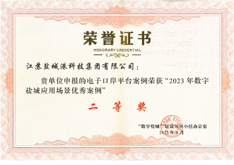 近日,“數字鹽城”建設領導小組辦公室公布了2023年“數字鹽城”應用場景優秀案例名單。科技集團申報的鹽城電子口岸平臺案例獲評二等獎,基于數字孿生技術的可視化協同智能調度系統獲優秀獎。