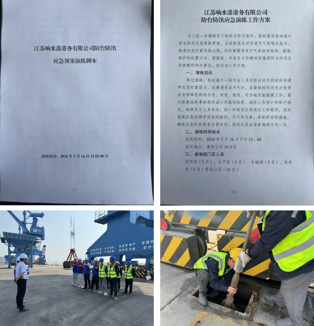 開展現(xiàn)場應(yīng)急演練。為增強員工防臺防汛意識,全面提高應(yīng)對惡劣天氣的應(yīng)急處置能力和協(xié)同配合水平,響水港區(qū)開展防臺防汛應(yīng)急演練。演練設(shè)置貨物轉(zhuǎn)移、電源切斷、機械固定、搶險救援、人員撤離等場景,演練現(xiàn)場分工明確、配合默契、處置得當,達到了預(yù)期效果,進一步驗證了防臺防汛應(yīng)急救援預(yù)案的科學(xué)性、實用性和可操作性。