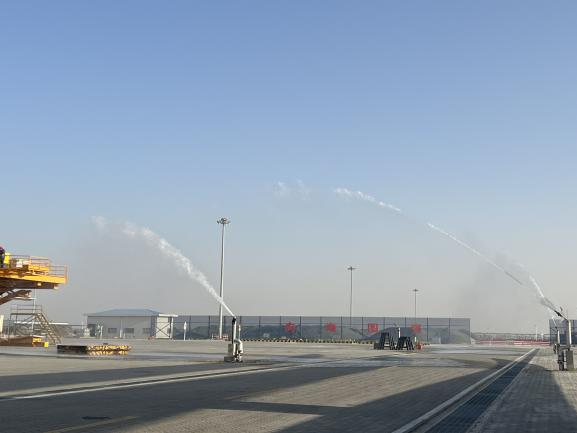 作為精準防塵抑塵重要試點工程,粉塵監(jiān)測與噴淋系統一體化項目建設覆蓋射陽港區(qū)整個散貨堆場區(qū)域,與萬噸級和3.5萬噸級堆場原有噴淋系統形成聯動,共建設10根霧樁噴淋,依據微脈沖氣溶膠激光雷達向大氣中發(fā)射連續(xù)的脈沖激光,獲取大氣的后向散射信號,連續(xù)監(jiān)測大氣氣溶膠的分布軟件系統運行,設施預警數值并聯動自動化噴淋,實現智能化精準降塵抑塵,項目建成使用可實現在減少1名人工使用成本的同時,據估算用水量較之從前可節(jié)約8000t/年。
