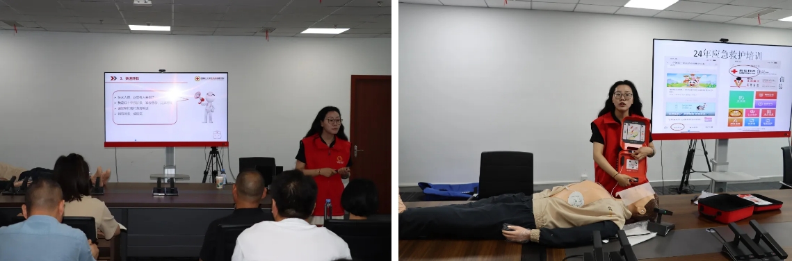 培訓中,講師首先講解了心搏驟停的危害及急救的重要性,強調了“黃金四分鐘”的重要性。隨后,講師詳細演示了AED的使用過程,包括打開包裝、取出AED、打開電源開關、貼放電極片、分析心律和電擊除顫等步驟。同時,講師還結合案例,講解了在實際操作中可能遇到的問題及解決方法。