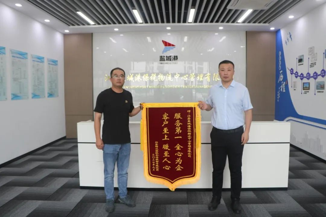 這面錦旗,不僅是對鹽城港保稅物流中心工作的肯定,更是雙方深厚合作情誼的見證。鹽城港保稅物流中心將持之以恒精進服務品質,以更高的標準,為更廣泛的企業群體提供超越期待的卓越服務,共同繪制更加輝煌的發展藍圖。