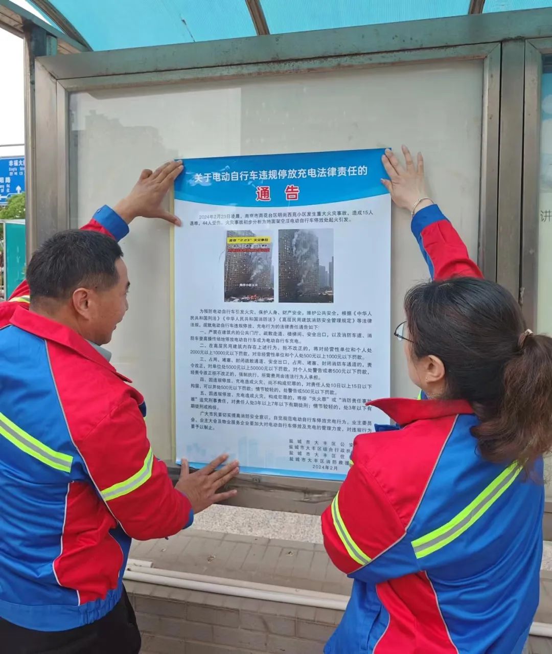 安全意識的提升是減少事故發生的首要環節,因此,工作人員在單元出入口、公告欄等顯眼位置張貼宣傳公告,內容涵蓋電動車安全使用、停放規范以及充電注意事項等。