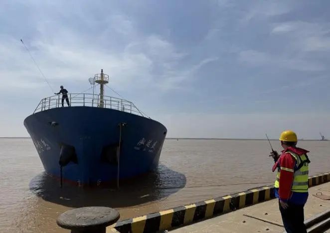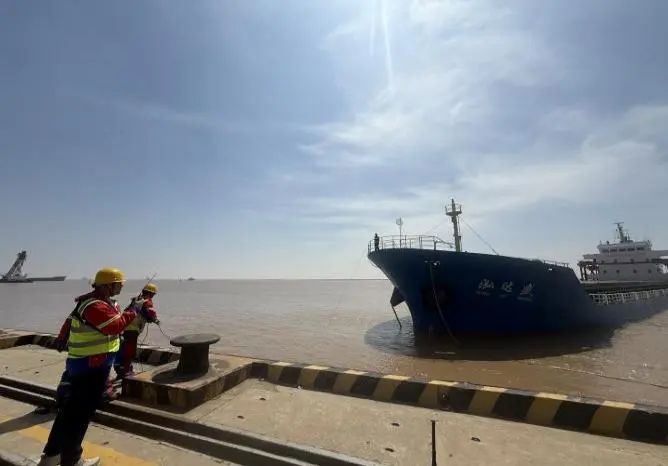 在射陽港區碼頭前沿,穿戴整齊調度員正和船長、碼頭操作人員通過對講機保持密切溝通,根據實際情況發出靠泊指令,指揮船舶控制航速、調整船位,確保船舶平行、緩慢地靠近泊位。同時提醒碼頭操作人員準備好纜繩、護舷等設備,完成系纜固定船舶工作。滿分穿搭為調度員的日常工作保駕護航,精準調度為下一步的裝卸作業提供了堅實的保障和高效的指引。