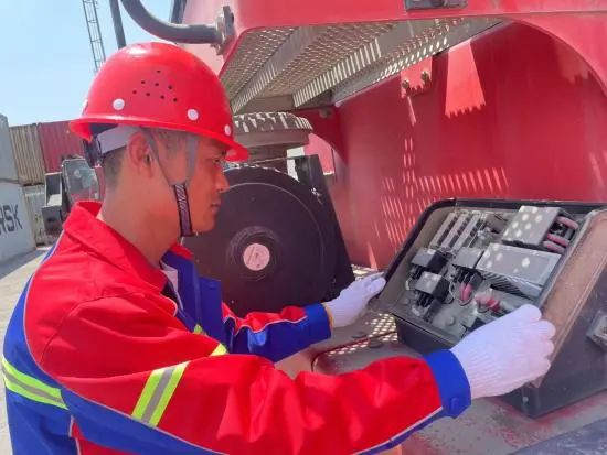 一天深夜,一臺正在作業的正面吊突發故障,若不及時修復,整個堆場作業效率將大幅下降,嚴重影響腹地企業的生產。接到通知后,王衛東顧不上深夜的疲憊,迅速趕到現場,對設備進行全面細致地檢查,并制定維修方案。經過幾個小時的緊張搶修,正面吊重新啟動,恢復正常作業。此時,天空已泛起魚肚白,但王衛東看著順利運轉的設備,臉上洋溢著欣慰的笑容,心中滿是熾熱的激情。