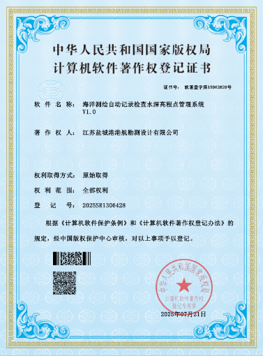 近日,勘測設計公司經國家版權局審核,獲一項計算機軟件著作權登記證書,為《海洋測繪自動記錄檢查水深高程點管理系統V1.0》。