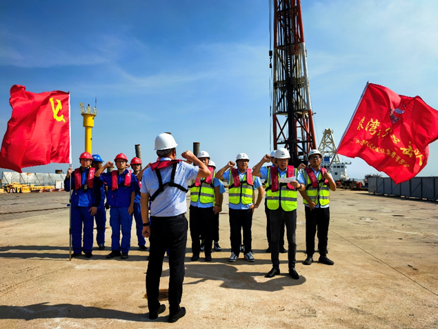 第一時間將集團會議精神傳達至各項目部、各班組,構建“公司統籌+項目落實+班組執行”三級攻堅體系。通過懸掛橫幅、張貼海報、召開班前會等形式,廣泛宣傳“百日攻堅”目標任務與重要意義,營造“人人談攻堅、事事為攻堅”的濃厚氛圍,推動全體干部職工將思想和行動統一到攻堅工作上來。嚴格遵循“三不變”原則,逐條梳理年度經營指標、項目建設節點、安全生產目標,制定“日跟蹤進度、周復盤問題、月總結成效”工作機制,為每個項目建立“任務清單+責任清單+時限清單”,確保攻堅方向不偏、力度不減。同時,公司充分發揮黨組織“紅色引擎”作用,組建“百日攻堅黨員突擊隊”,由班子成員帶隊下沉一線,進駐大豐港區重點項目現場,實行“一線辦公、現場解題”,將黨建力量與攻堅任務深度融合,以黨員先鋒模范作用帶動全員攻堅熱情。