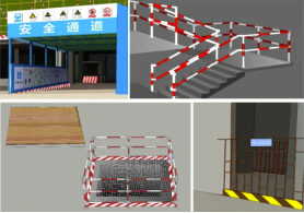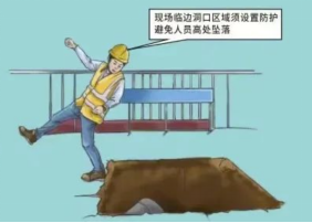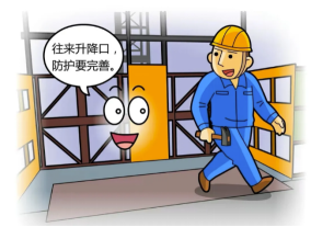 樓梯口、電梯口、預留洞口、通道口和地坑口必須有防護設施,夜間設紅燈示警。
