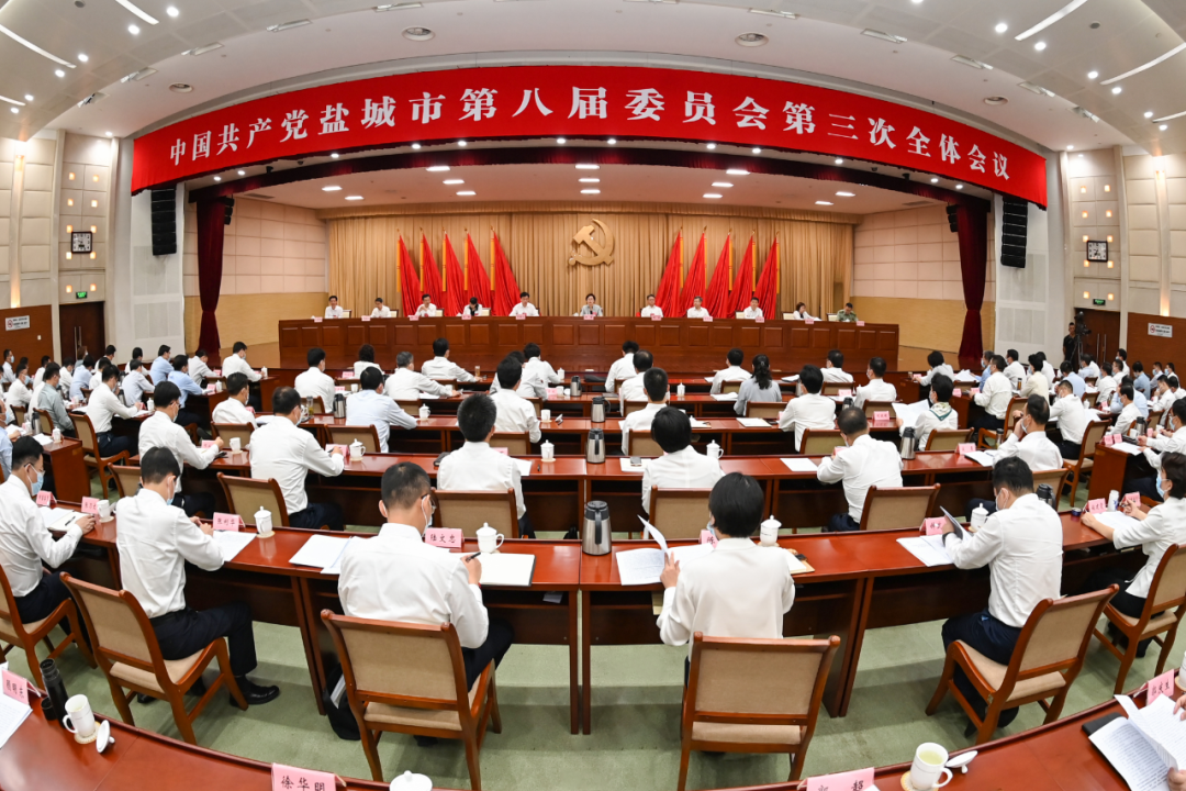 8月9日,中國共產(chǎn)黨鹽城市第八屆委員會第三次全體會議舉行。全會堅(jiān)持以習(xí)近平新時(shí)代中國特色社會主義思想為指導(dǎo),深入學(xué)習(xí)貫徹習(xí)近平總書記在省部級主要領(lǐng)導(dǎo)干部“學(xué)習(xí)習(xí)近平總書記重要講話精神,迎接黨的二十大”專題研討班上的重要講話精神,全面落實(shí)“疫情要防住、經(jīng)濟(jì)要穩(wěn)住、發(fā)展要安全”重大要求,認(rèn)真落實(shí)省委工作會議精神,總結(jié)上半年工作,部署當(dāng)前和今后一段時(shí)期重點(diǎn)任務(wù),競逐綠色低碳發(fā)展新賽道,勇當(dāng)沿海地區(qū)高質(zhì)量發(fā)展排頭兵,為全省“勇挑大梁”多作貢獻(xiàn),以實(shí)際行動迎接黨的二十大勝利召開。