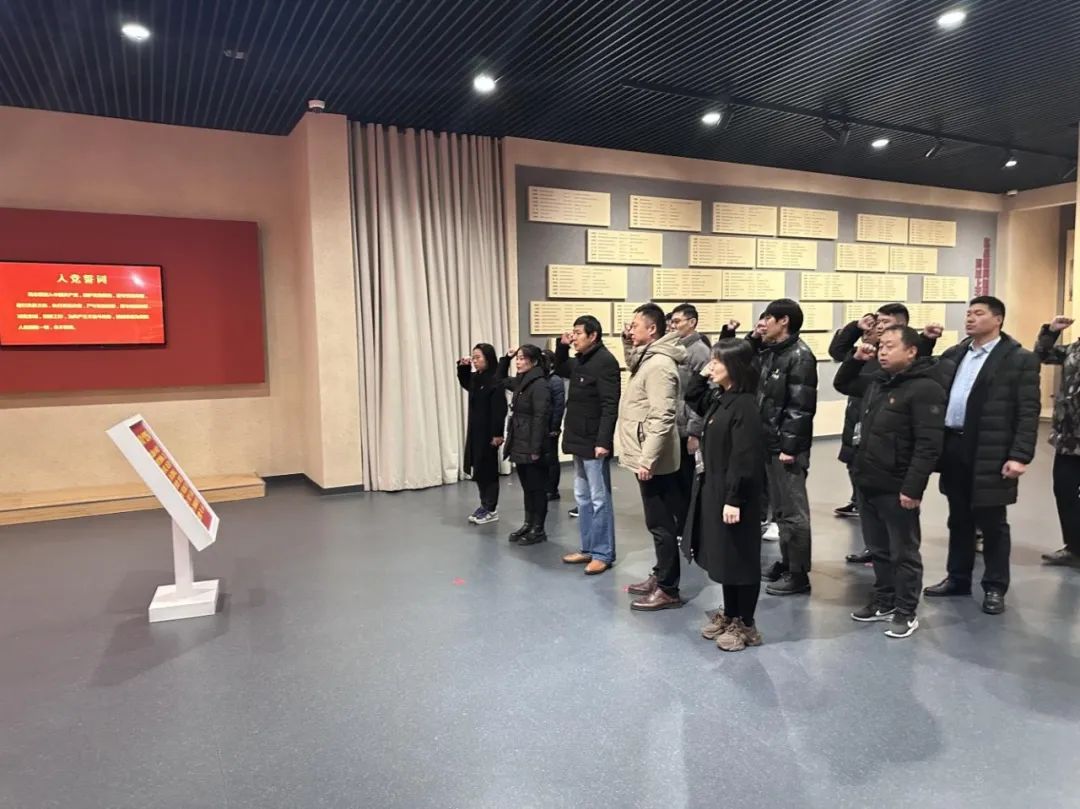 “我志愿加入中國共產黨,擁護黨的綱領,遵守黨的章程……”全體黨員干部高舉右拳,重溫入黨誓詞,洪亮而堅定的宣誓聲,在館內久久回蕩。