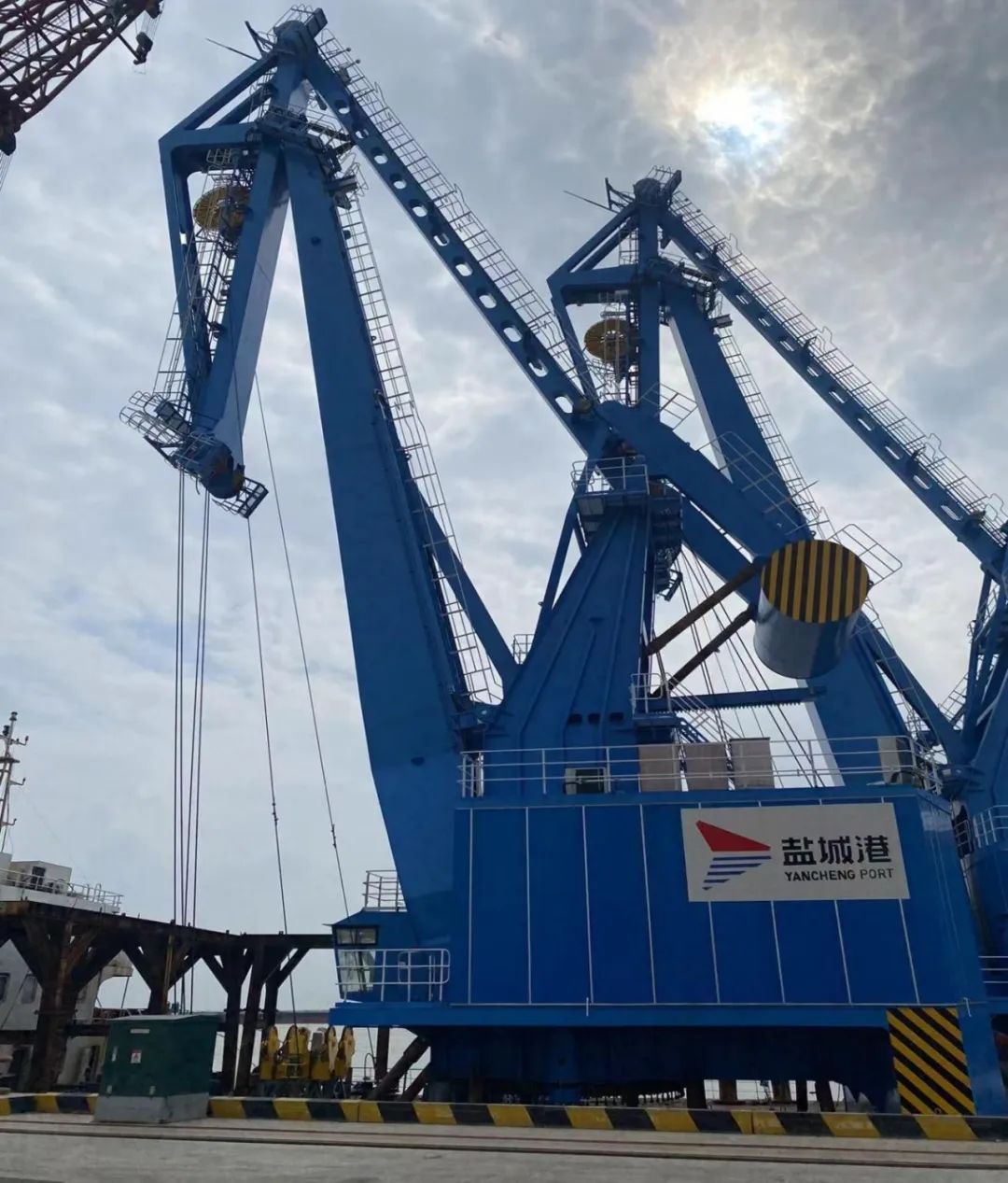 7月7日下午,裝載著兩臺門座式起重機的“東方宏立”輪順利靠泊響水港區(qū)重件碼頭小蟒牛作業(yè)區(qū)6#泊位,響水港區(qū)重件碼頭迎來兩位“藍色戰(zhàn)將”。全新的大海藍配色讓人眼前一亮,“藍色戰(zhàn)將”未來將和“紅色家族”一起構(gòu)成碼頭前沿最靚麗的風景線,為港口生產(chǎn)提質(zhì)增效注入新動能。