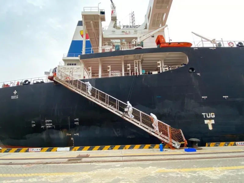 “弗朗西斯科”號輪原計劃二月中旬靠泊大豐港區(qū)進(jìn)行貨物裝卸,因疫情防控、天氣惡劣等因素影響,導(dǎo)致大豐港區(qū)封港,船只無法正常靠岸。作為收貨方的江蘇博匯紙業(yè)公司,因長期收不到貨,導(dǎo)致庫存極度緊張,面臨著紙機(jī)停產(chǎn)的困境。集團(tuán)第一時間了解情況后,當(dāng)即決定利用鹽城港“一港四區(qū)”泊位資源,將該船轉(zhuǎn)港至濱海港區(qū)卸貨,解決客戶燃眉之急。在集團(tuán)黨委的統(tǒng)一指揮下,相關(guān)港區(qū)主動對接,多方聯(lián)系,及時掌握船舶動態(tài),合理調(diào)配人力資源,全力保障“弗朗西斯科”號外籍貨輪順利入港停泊。