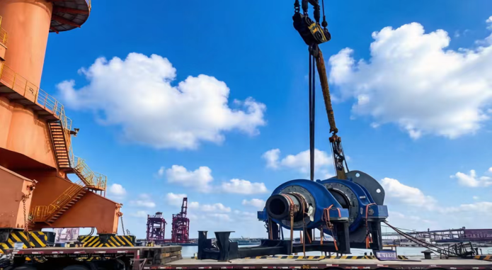 此次新貨種順利作業(yè),是濱海港區(qū)深耕市場、精準對接山東港等重點企業(yè)產(chǎn)業(yè)需求的重要突破。該批新貨種涵蓋3件30噸軸系、2件14噸吊具、2件2.5噸底座及20噸散件,均為風電葉片配套核心部件。為保障首單新貨種作業(yè)順利推進,濱海港區(qū)提前謀劃、周密部署,專門組建專項工作小組,深入調(diào)研貨種特性、裝卸標準及運輸要求,主動聯(lián)動海關(guān)、海事等口岸單位,優(yōu)化通關(guān)、靠泊全流程,全力實現(xiàn)“即到即靠、即靠即卸”,為高效作業(yè)筑牢基礎(chǔ)。